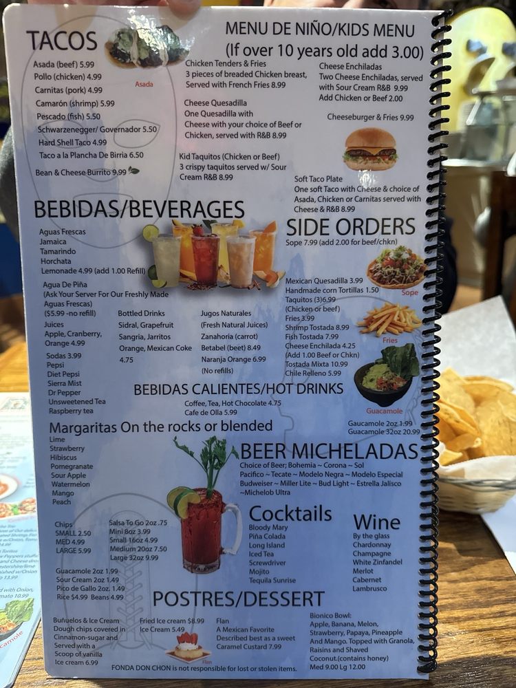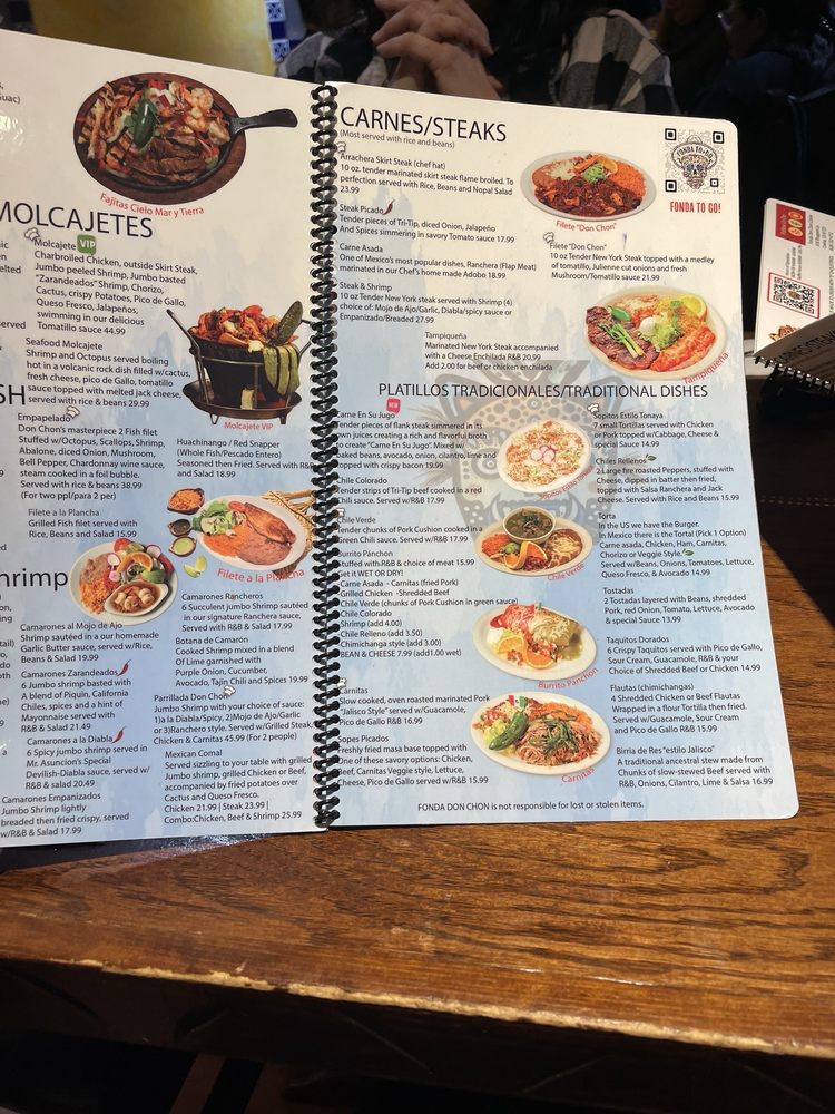 One of the standout dishes is the Cheese Enchiladas, served with rice, beans, and all the trimmings. Customers rave about the homemade tortillas, supreme molcajete, and flavorful chicken plates. The buffet is a hit, with a variety of dishes like fish, shrimp ceviche, carnitas, and more. The friendly service and vibrant ambiance make dining at Fonda Don Chon a memorable experience. Don't miss out on their bionico bowl dessert or agua fresca de piña. Come for the food, stay for the margaritas with friends.